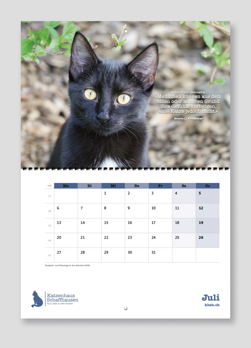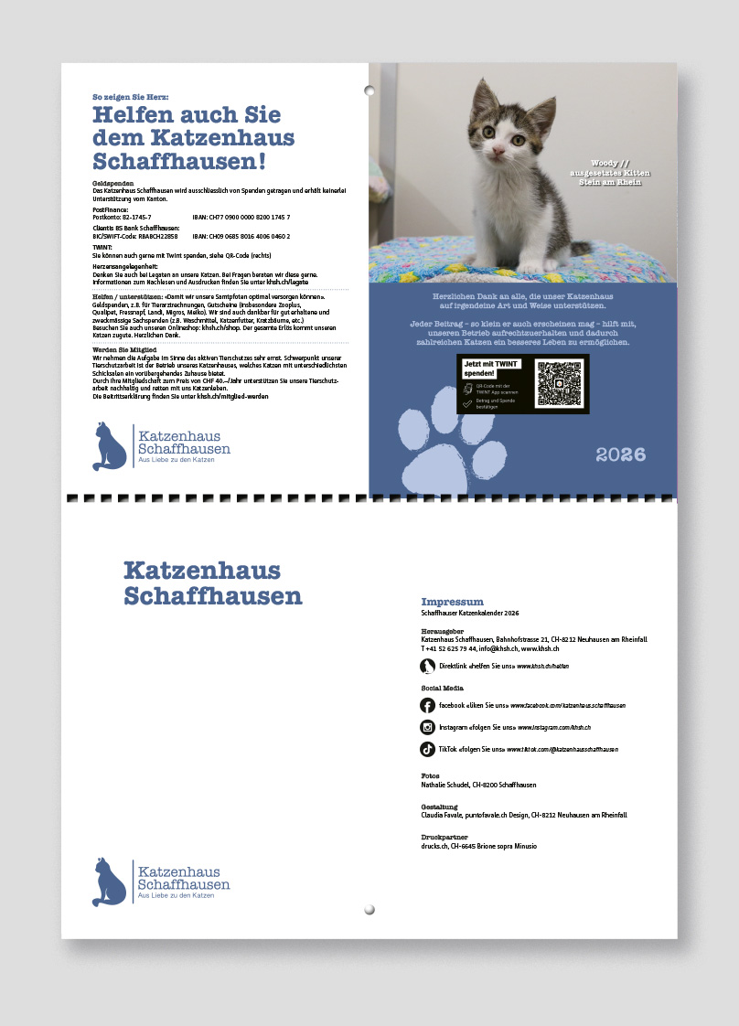Bestellen könnt ihr den Katzenkalender ab sofort direkt im Katzenhaus unter Telefon: +41 52 625 79 44 oder über den Katzenhaus-Online-Shop, wo ihr auch weitere interessante Artikel findet.